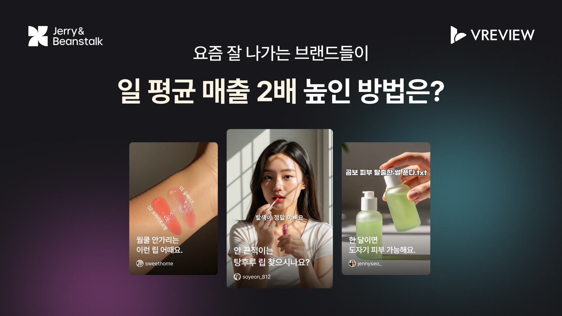 ![[브이리뷰×스프레이] 특별 혜택과 함께 인플루언서 시딩 효율을 200% 높이세요!](https://cdn.prod.website-files.com/6476e85ade69432e1ca65857/6857cae462988817291a63c9_%E1%84%89%E1%85%B3%E1%84%91%E1%85%B3%E1%84%85%E1%85%A6%E1%84%8B%E1%85%B5%20%E1%84%8C%E1%85%A6%E1%84%92%E1%85%B2%20%E1%84%8F%E1%85%A9%E1%86%AB%E1%84%90%E1%85%A6%E1%86%AB%E1%84%8E%E1%85%B3%20%E1%84%8A%E1%85%A5%E1%86%B7%E1%84%82%E1%85%A6%E1%84%8B%E1%85%B5%E1%86%AF.jpg)